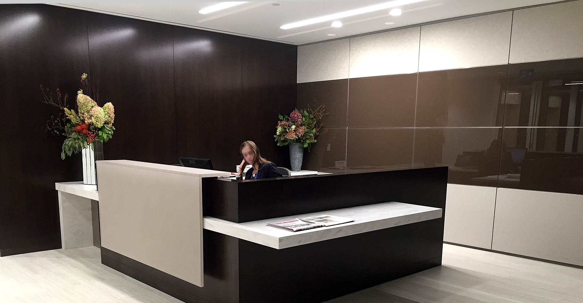 HMG Custom Interiors Inc. provides premium quality custom millwork for the business and corporate sector within Toronto and surrounding area. HMG Custom Interiors Inc. manufactures custom wood and plastic laminate products, credenzas, reception desks, ceiling, wall panels and trims. We also provide wood veneer and paint grade shop finished doors and frames.